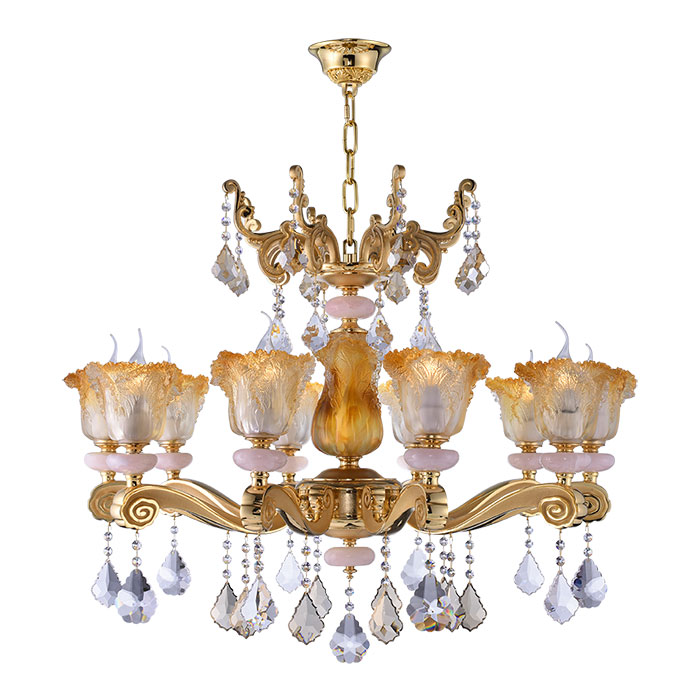 灵感:以东方文明象征财富的“百财”和象征“如意”的玉石为创作灵魂,绽放财富之光。灯饰采用意大利进口玻璃,搭配进口优质玉石。在施华洛世奇®水晶的辉映下,流露雍容高贵的气质,玉和百财的结合集人气、财气、贵气等好的运势于一身,象征节节攀升,汇聚百财。