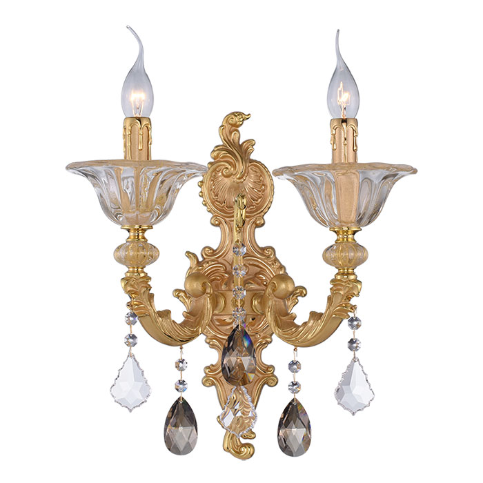 价值:精选高标号优质铜材,24K电镀金,搭配施华洛世奇®特供水晶,纯手工雕刻灯臂精美花纹;
